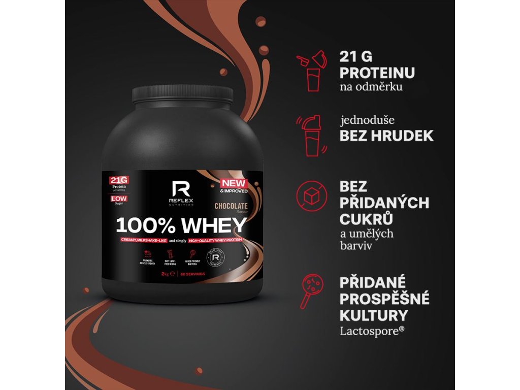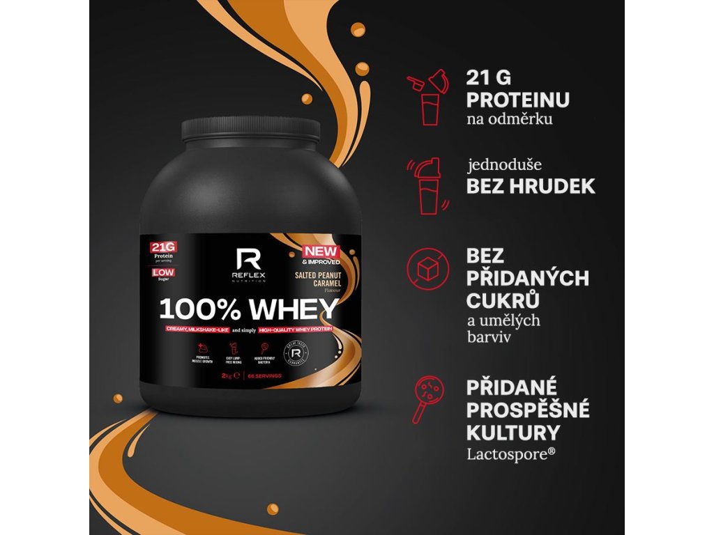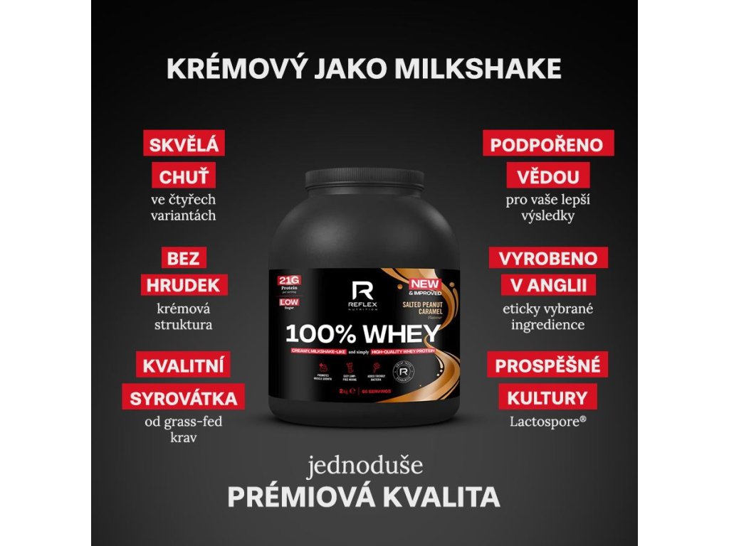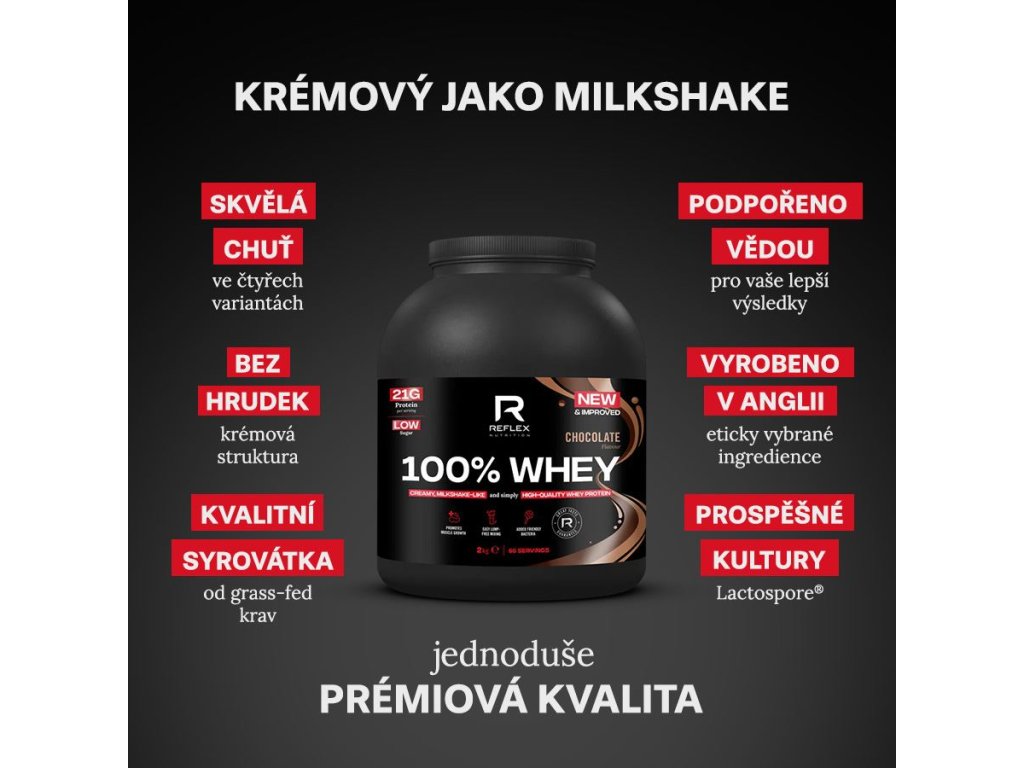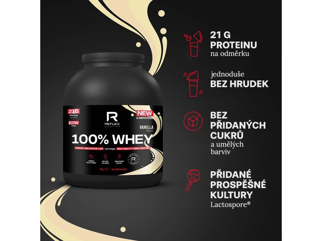 - 100% Whey nabízí krémovou a lahodnou texturu - ve formě mléčného šejku s bohatou chutí.