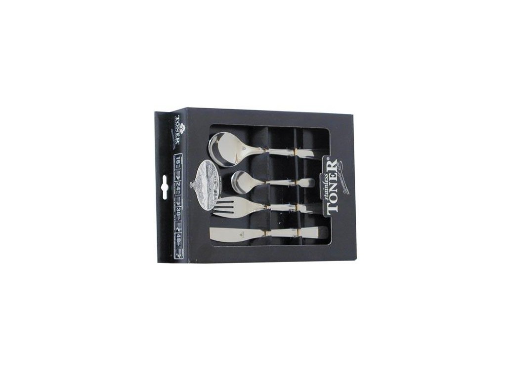 24 ks (6 ks polévkových lžic, 6 ks vidliček, 6 ks nožů, 6 ks kávových lžiček)