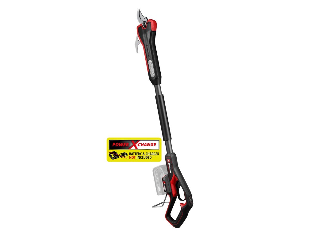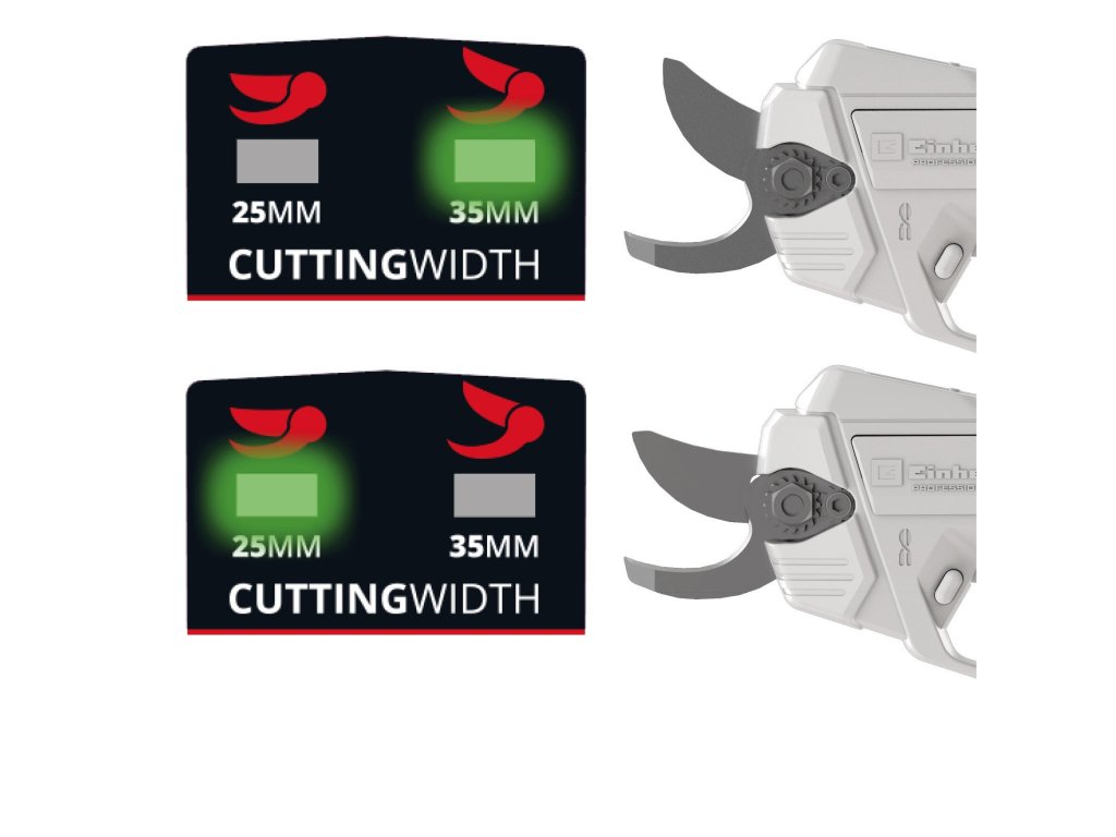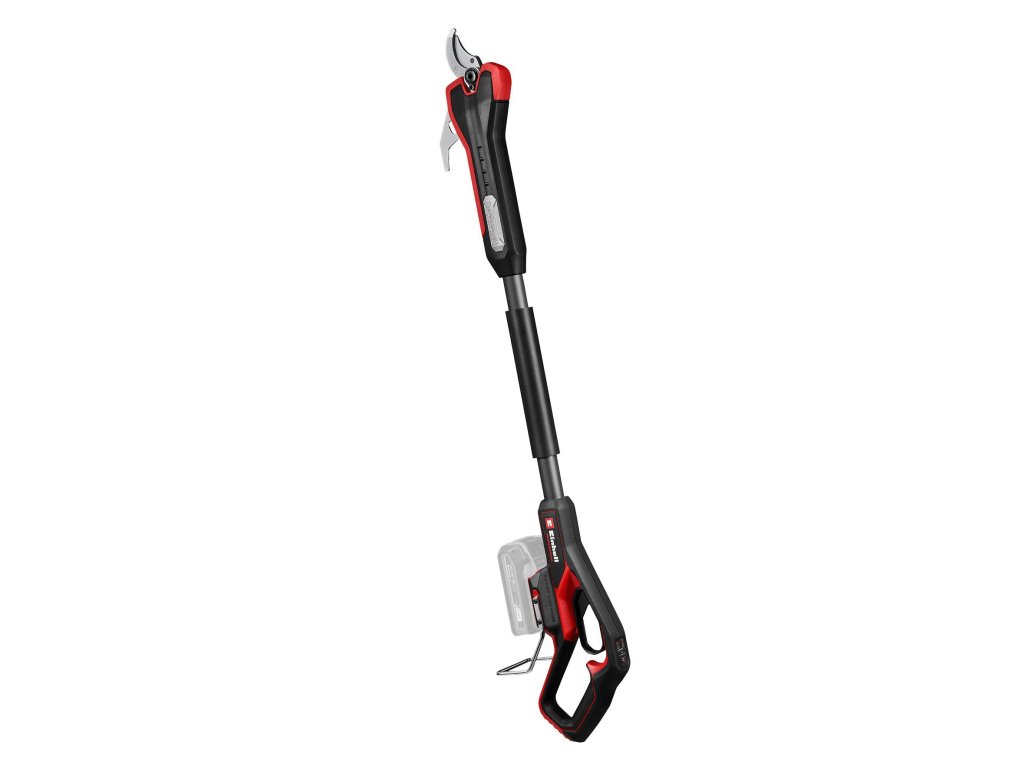 The Einhell Professional cordless pruning shears GP-LS 18/35 Li BL-Solo are the ideal aid for trimming roses, shrubs, perennials or fruit trees – for professional gardeners or in the garden at home. As a member of the Einhell Power X-Change family, any battery and charger can be used with these pruning shears. The tool is powered by an Einhell Brushless motor. This brushless motor provides more power and longer runtimes than a conventional carbon brush motor. Once you register online, there is a 10-year warranty on the Brushless motor. The cordless pruning shears easily cut branches up to a thickness of 35 mm at a working height of up to 3 metres. Thinner branches with a thickness of up to 25 mm can be cut faster. The cutting capacity can be changed easily at the touch of a button directly on the handle with soft grip surface. The high-quality bypass blades made of SK5 steel ensure clean and sharp cuts without crushing the branches. They can be conveniently operated directly on the handle. A built-in robust metal hook can be used for removing the cut branches from the tree. A sturdy plastic cover allows for secure storage. A mountable steel bracket ensures optimum battery protection. The Einhell Professional GP-LS 18/35 Li BL-Solo cordless pruning shears are supplied without a battery and charger. These are available separately, for example as a convenient starter kit.