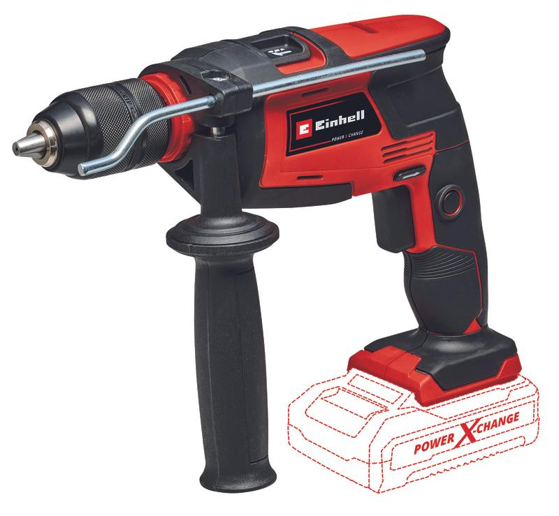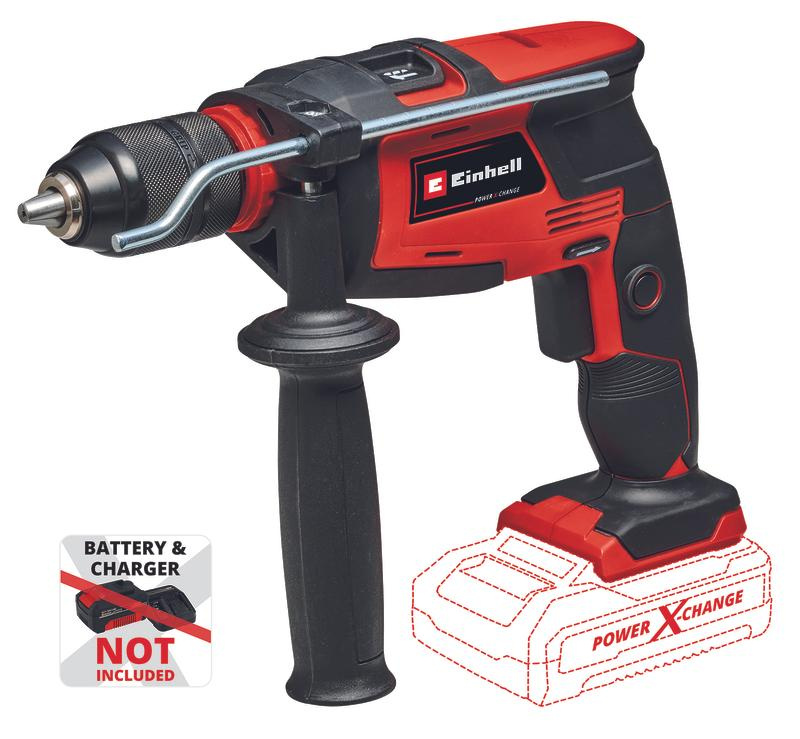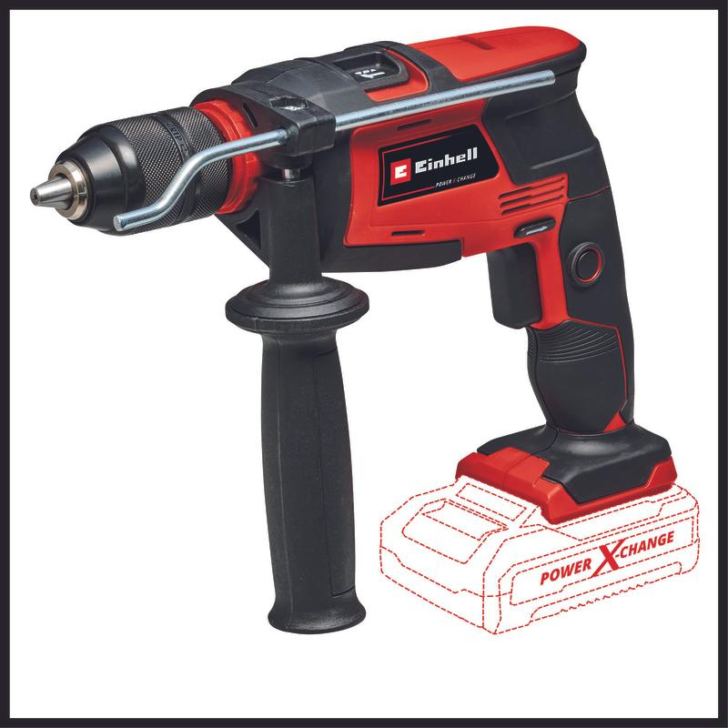 The Einhell cordless impact drill TE-ID 18 Li - Solo is a high-power member of the flexible Power X-Change family. Each PXC rechargeable battery can be combined with any other device from the system series. With its two functions, the cordless impact drill is a powerful tool helping beginners and experienced DIY enthusiasts when drilling and impact drilling into the appropriate material. The continuous operation lock enables holes to be drilled even in tough materials. The speed electronics allows adjustment to the specific material and application whatever the power level of the hammer drill. The adjustable drilling depth stop made of solid metal prevents holes being made too deep. The forward/reverse rotation facility supports drilling, while the 13 mm metal quick-change drill chuck makes tool changing easy. The ribbed additional handle and the ergonomic design of the handle and the additional handle with soft grip ensure a reliable grip even when resistance is felt. The TE-ID 18 Li - solo is suitable for fastening in a drill stand with a 43 mm shaft. This product comes without a battery and charger. These are available separately, e.g. as a practical Power X-Change starter set.