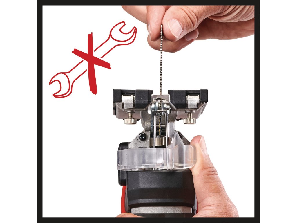 The Einhell Professional Cordless Jigsaw TP-JS 18/135 Li BL is the perfect tool for ambitious DIYers who need the perfect cut in a whole host of different materials. As a member of the Power X-Change family, it offers excellent flexibility when working in the home, workshop and garage, because all devices, batteries and chargers can be combined within the system family. With its high running smoothness, the cordless jigsaw achieves precise cuts. For fast cuts, the pendulum stroke can be engaged. The tool is driven by an Einhell Brushless motor. This Brushless motor provides more power and longer running times than a conventional carbon brush motor. Once you register online, the brushless motor has a 10-year guarantee. The powerful cordless jigsaw can achieve cuts up to 135 mm deep in wood and 10 mm in steel, as well as bevel cuts at up to 45°. It also features a convenient cutting line indicator and an LED light for illuminating the cutting area. Thanks to speed electronics, it is possible to work perfectly matched to the material and application. The tool-free blade holder cuts down on unnecessary movements and allows quick and easy blade replacement. Optimum visibility while working is ensured by the dust blower function or, alternatively, the included extraction adapter, which allows a wet/dry vacuum cleaner to be connected. The integrated plastic glide insert protects particularly delicate workpieces, while the anti-splinter guard ensures tear-free cuts. The stable aluminium base plate dampens the vibrations of the saw. Includes one jigsaw blade for wood. The product does not include a battery or charger. These are available separately, for example in a convenient starter set.Doplňkové parametry
