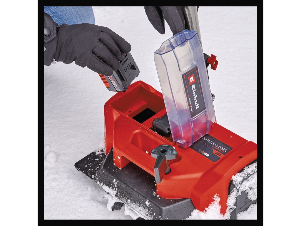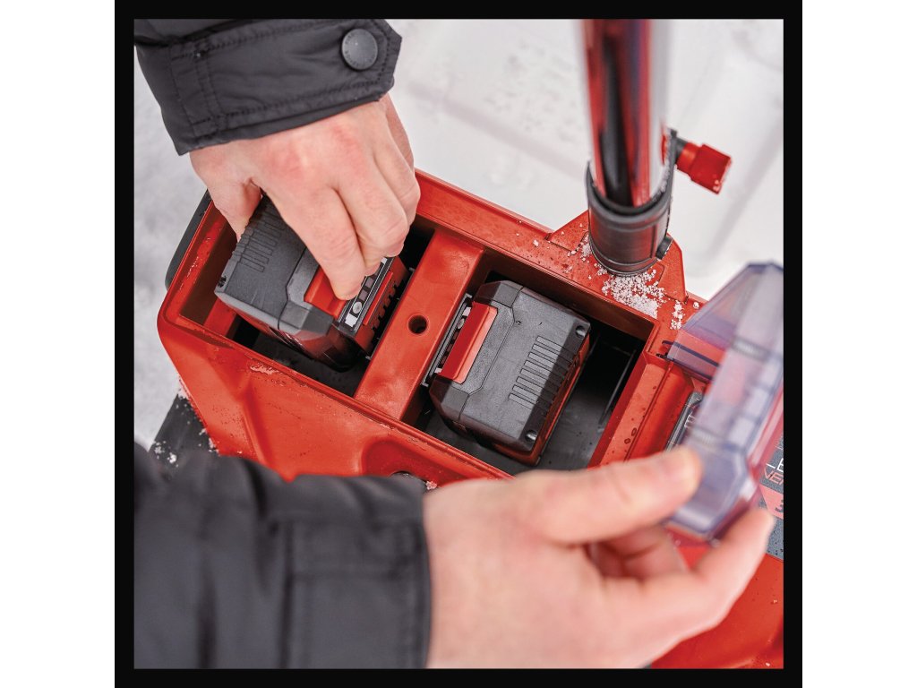 Akumulátorová sněhová fréza Einhell GE-ST 36/40 Li E-Solo se v zimě osvědčí jako spolehlivý pomocník při úklidu dvora, příjezdové cesty či chodníku. Odklízení sněhu je s tímto výkonným členem rodiny Power X-Change, vybaveným výkonnou technologií TWIN PACK, hračkou. Zařízení je poháněno bezuhlíkovým motorem Einhell PurePOWER. Tento motor nabízí vyšší výkon a delší dobu provozu než běžné motory s uhlíkovými kartáči a navíc se na něj po online registraci vztahuje prodloužená desetiletá záruka. Směr vyhazování sněhu lze snadno nastavit pomocí ovládací páky: vlevo, vpravo nebo rovně. Přídavná rukojeť umožňuje příjemné obouruční ovládání a stabilní vedení a akumulátorová sněhová fréza je také samostatně stojící, což chrání zařízení. Dalším bezpečnostním opatřením je dvoubodový bezpečnostní spínač, ten chrání před nechtěným spuštěním. Akumulátorovou sněhovou frézu lze snadno přenášet pomocí integrovaného držadla. Kryt akumulátoru s praktickým magnetickým uzávěrem chrání akumulátory před sněhem a vlhkostí během provozu. K provozu jsou zapotřebí 2x 18 V baterie Power X-Change, pro optimální výsledky se doporučují baterie o kapacitě 4,0 Ah nebo větší. Součástí dodávky není akumulátor ani nabíječka, ty jsou však k dispozici samostatně, například jako praktický Starter Kit.