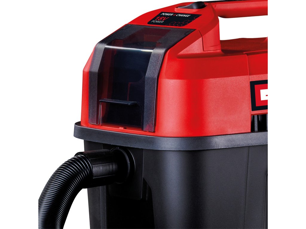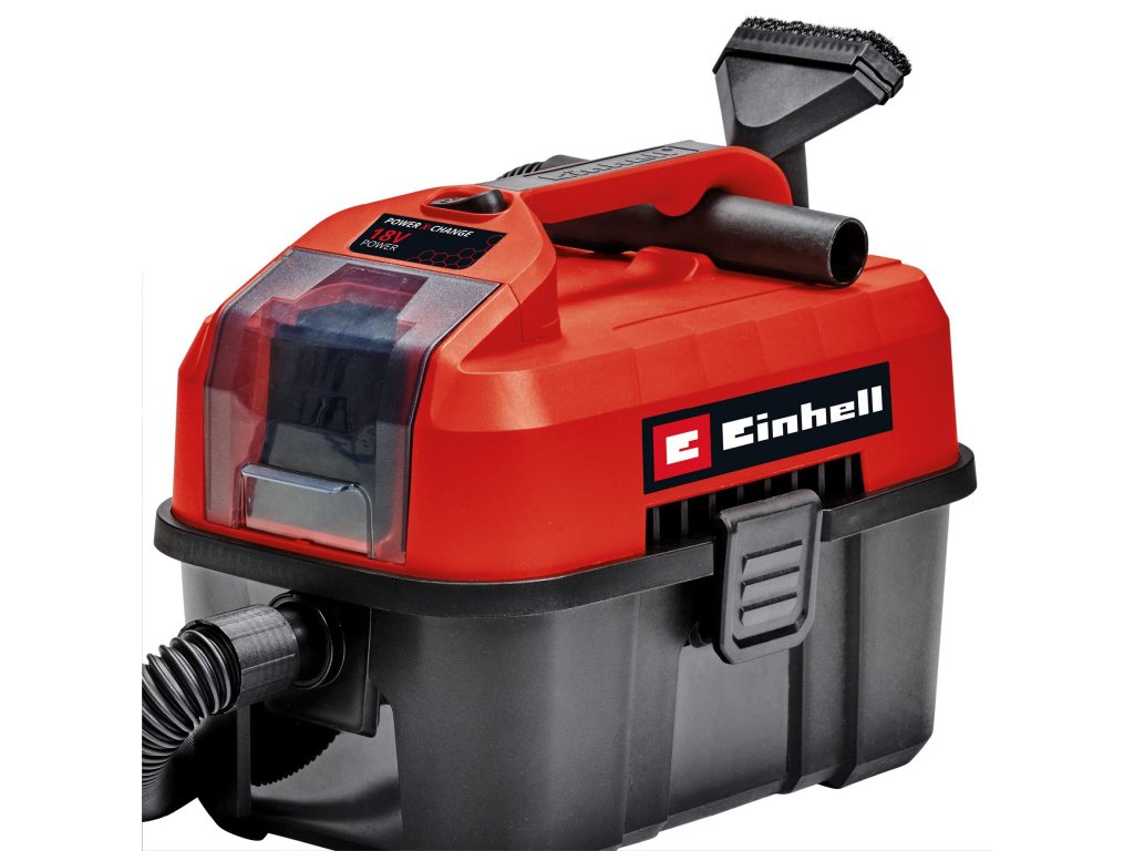 The Einhell TE-VC 18/10 Li-Solo cordless wet-dry vacuum cleaner effortlessly tackles dust, dirt and even liquids – cordless flexibility, no matter whether in the home, workshop, basement or garage. The versatile vacuum cleaner is a part of the Power X-Change family, it allows seamless compatibility with all batteries, system devices, and chargers. The large collection bag has a volume of 10 litres. The ergonomic design and integrated carrying handle ensures convenient transport and user-friendly operation. Whether on tiles, carpets, and other floors, the versatile vacuum cleaner makes it ideal for both wet and dry vacuuming tasks. The blowing function clears out difficult-to-reach areas effectively. Accessories can be conveniently stored onboard the device itself. Emptying the collection bag is quick and easy thanks to integrated quick-release fasteners. The strategically positioned on/off switch ensures effortless one-handed operation. The delivery includes an extendable 2-metre hose, a 2-in-1 crevice/brush nozzle, a 2-in-1 upholstery/universal nozzle, a foam filter for wet vacuuming, and a filter and dirt collection bag for dry vacuuming. The battery and charger are not included. These are available separately, e.g. as an Einhell starter set.