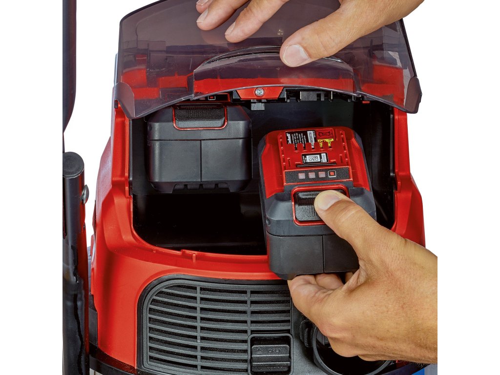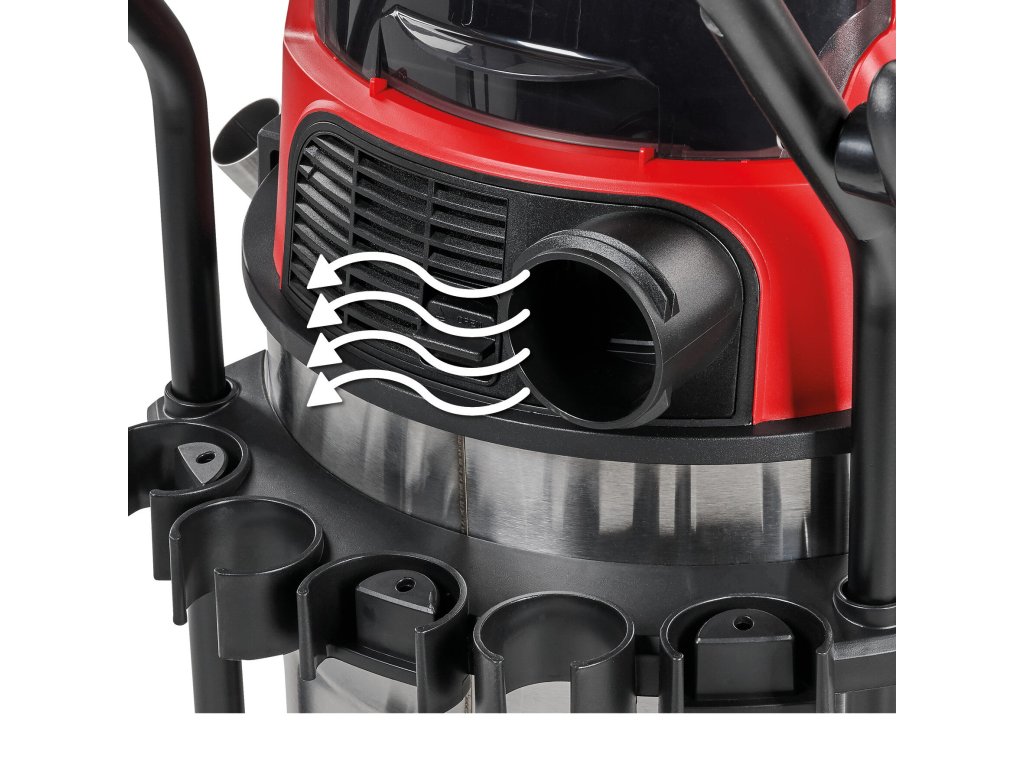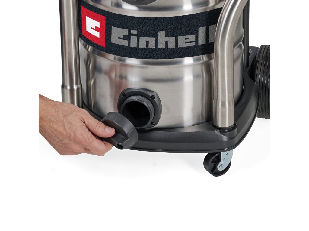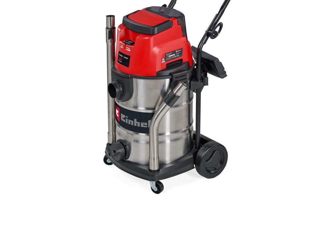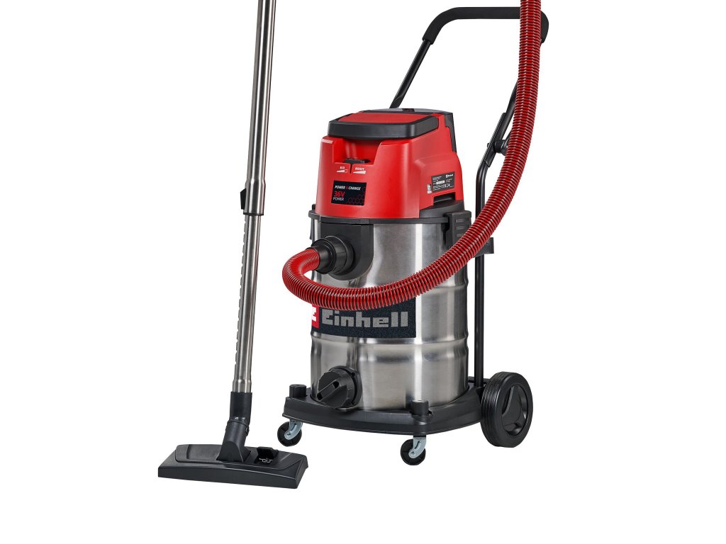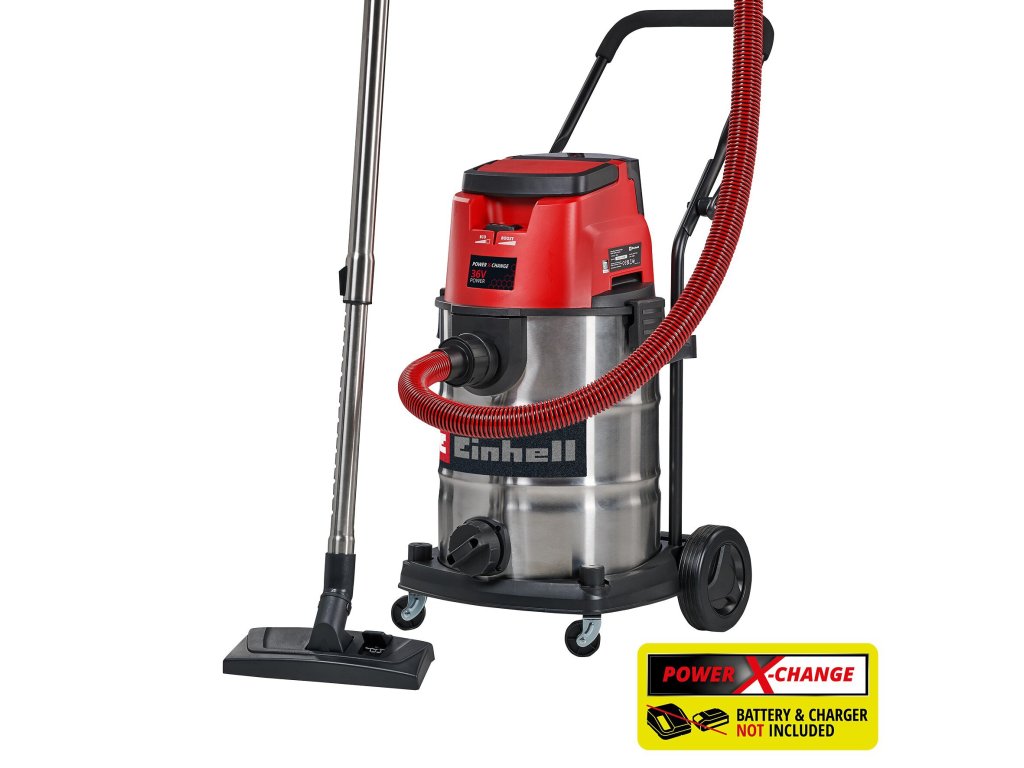 The Einhell cordless wet/dry vacuum cleaner TE-VC 36/30 Li S-Solo is an indispensable helper for a variety of cleaning jobs around the home, in the basement, workshop or garage. The cordless wet/dry vacuum cleaner is part of the highly efficient Power X-Change family and can therefore be used flexibly, far away from any power socket. It can be combined with all batteries and chargers of the system family. The wet/dry vacuum cleaner offers two power levels: The ECO mode extends battery running time, making it suitable for longer vacuuming jobs. The BOOST mode provides maximum suction capacity to effortlessly pick up even the most stubborn of dirt. The sturdy, stainless steel container can hold up to 30 litres of dirt or liquids, and the integrated water drain plug makes for easy draining of collected liquids. Narrow recesses can be easily blown clean using the blower function. You can infinitely adjust its suction capacity up to 150 mbar via the air regulator on its handle. Large wheels and rollers make for easy transport. There is also a handy accessory holder for neatly stowing nozzles, suction hose and suction pipes. The telescopic tube with its diameter of 36 mm is made of stainless steel. Scope of delivery includes a heavy-duty suction hose (Ø 36 mm, 2.5 m length) as well as a large combi nozzle for carpets and hard floors. With its foam filter, pleated filter and paper dirt collection sack supplied, there is nothing stopping you from getting started. Does not include a battery or charger. These are available separately.Doplňkové parametry