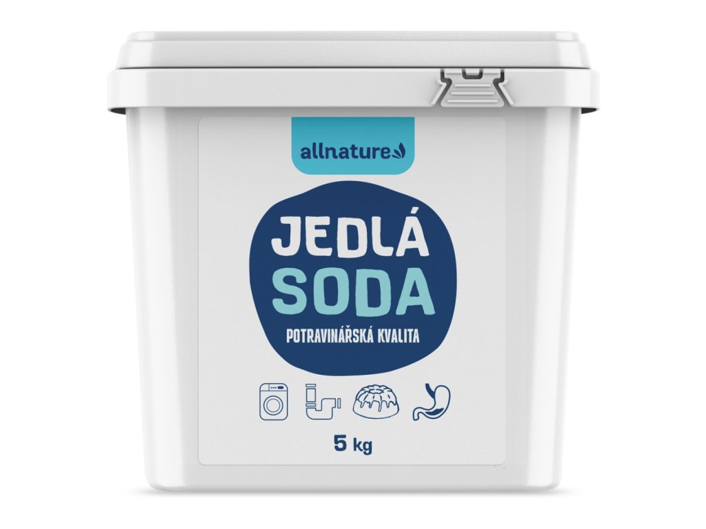 Allnature Jedlá soda je všestranný pomocník, který lze využít během úklidu domácnosti i při každodenní hygieně. Působí zásaditě, může pomoci při překyselení žaludku a pálení žáhy. Odstraňuje pigmenty a usazeniny na zubech. Čistí usazené nečistoty a mastnotu, na praní prádla.