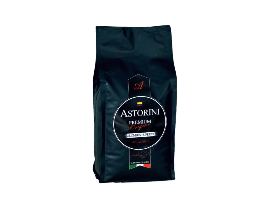 ASTORINI Colombia Supremo je jednodruhová odrůdová 100% Arabica, pocházející ze severní části Kolumbie, z horských oblastí pohoří Sierra Nevada. Káva je pěstována v nadmořské výšce 1 600 - 2 000 m a vyznačuje se mírnou aciditou. Pro Supremo je typické velké zrno, sametová chuť a silné aroma. Tělo je plné, základ chuti je čokoládový s nádechem karamelu. Vyvážená chuť, aroma Hmotnost: 500g