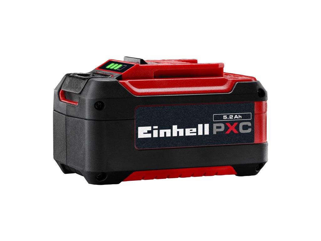 Einhell 18V 5,2 Ah Power X-Change PLUS je součástí multifunkčního a neomezeně kombinovatelného bateriového systému Power X-Change od společnosti Einhell. Univerzálně použitelné baterie Power X-Change dodávají energii a výdrž všem akumulátorovým nástrojům z celé rodiny produktů v zahradě a dílnách. Výhody pro zákazníka jsou zřejmé: Díky jedné baterii a jedné nabíječce pro všechna zařízení ušetříte nejen značné náklady na nákup, ale navíc univerzální aplikace chrání životní prostředí a zároveň nabízí flexibilitu v domácnosti i na zahradě. Neexistuje také nepořádek nebo chaos s širokou škálou baterií a nabíječek pro každé jednotlivé zařízení. Technologie PLUS navíc znamená extra výkon pro vysoce výkonnou práci. Vysoce kvalitní baterie navíc odolá paměťovému efektu a obvyklému samovybíjení baterie pro konstantní vysoký výkon. 18 V 5,2 Ah PXC PLUS je špičková baterie z rodiny Power X-Change a je také vhodná pro použití TWIN-PACK během 36V aplikací. Procesem řízený aktivní systém řízení baterie ABS nepřetržitě sleduje parametry baterie pomocí mikroprocesoru. Tím je zajištěna maximální bezpečnost, optimální výkon zařízení, maximální doba běhu a maximální životnost. Aktuální stav nabití lze zkontrolovat pomocí 3stupňového LED displeje. Pouzdro díky své konstrukci odolává prachu, korozi a mechanickým vlivům. Pryžový povlak poskytuje baterii vysokou úroveň ochrany proti nárazu a dobrou zlepšuje přilnavost. Pomocí přizpůsobeného držadla ji lze snadno sejmout ze všech zařízení.