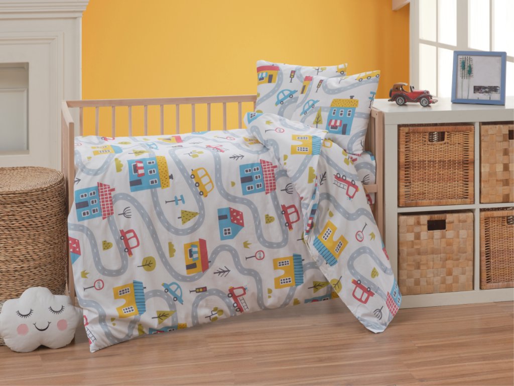 Bavlněné dětské povlečení do malé postýlky 90x135, 45x60 cm Městečko