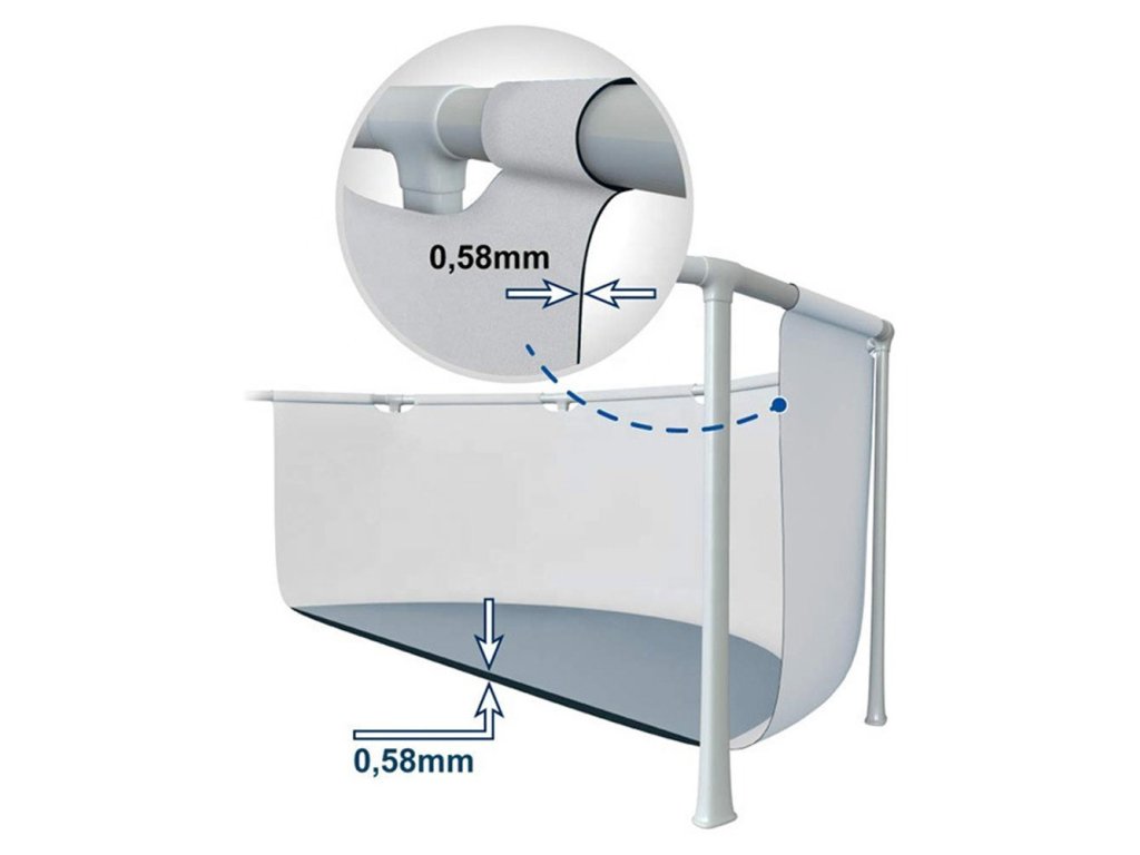 Masivní obvodová konstrukce zajišťuje vysokou stabilitu a dlouhou životnost. S tímto bazénem o průměru 300 x 175 x 80 cm cm je osvěžení, zábava a dobrá nálada zaručena. Objem vody při 90 % naplnění 3539 l. Dno a boční stěny této série bazénů jsou vyrobeny ze 3 vrstev materiálu SUPER-TOUGH®. Tento velice pevný materiál se skládá z polyesterové podkladové tkaniny se silným, oboustranně nalaminovaným PVC. SUPER-TOUGH® je obzvlášť odolný proti oděru, nárazu a slunečnímu záření.