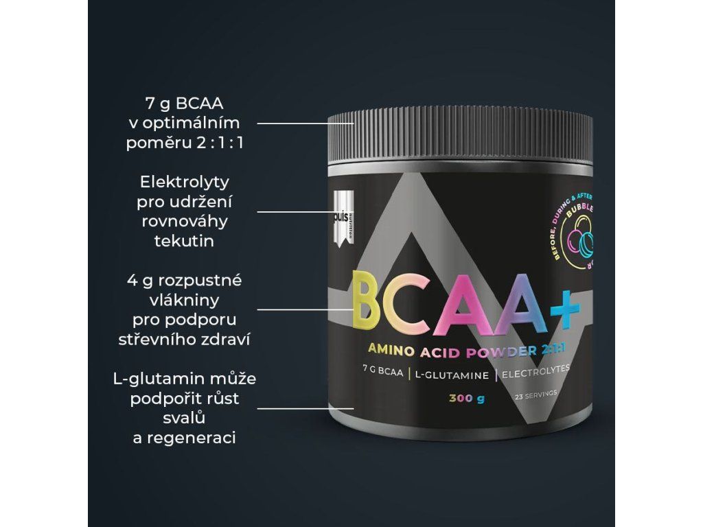 Aminokyseliny s rozvětveným řetězcem pro podporu svalů. Nastartujte trénink a růst svalů s našimi BCAA+, které dodávají výrazných 7 g aminokyselin s rozvětveným řetězcem v jedné dávce. Vědecky ověřený poměr 2 : 1 : 1 zajišťuje, že každá osvěžující porce účinně podporuje ochranu a růst svalové hmoty.