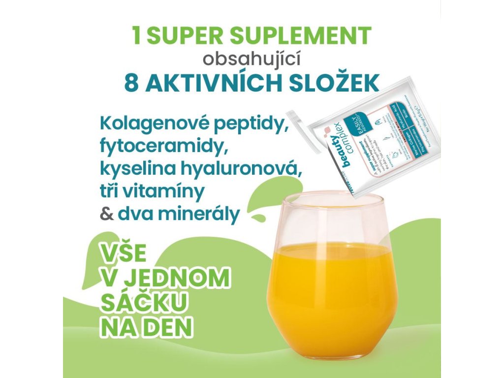 Beauty Complex je komplexní produkt z kategorie vše v jednom, s obsahem všech nejdůležitějších doplňků stravy v jednom produktu a v jedné denní dávce!