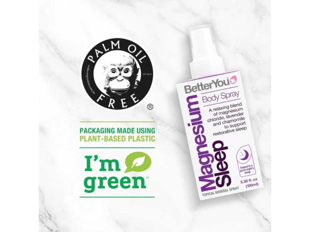 Rychlý a efektivní způsob aplikace magnézia transdermální. Obohacený o éterické oleje - levandule a heřmánku. Magnéziový tělový sprej pro lepší spánek je určen k lokálnímu použití, začne se vstřebávat okamžitě po nastříkání na pokožku. Tento základní minerál přispívá k relaxaci. Hořčík použitý v tělovém spreji s hořčíkovým olejem byl přirozeně čištěn po dobu 250 milionů let, aby bylo zaručeno, že neobsahuje umělé znečišťující látky a těžké kovy. Pochází z přírodního zdroje, hluboko z přírodní kůry. Garantovaná čistota. Neobsahuje palmový olej.