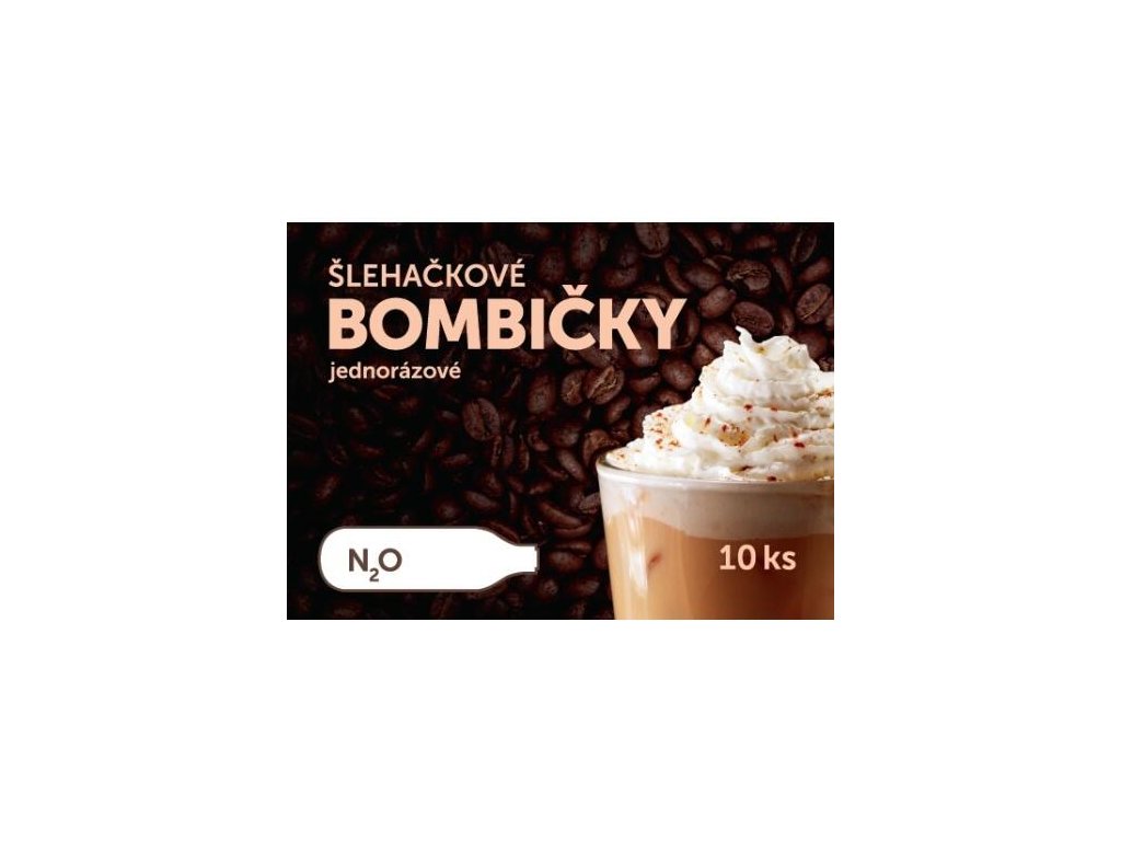 Bombička šlehačka náplň (10 ks).Tradičních šlehačkové bombičky. Šlehačkové bombičky vypadají na první pohled stejně jako bombičky sifonové, liší se pouze matkou, která je v tomto případě stříbrná.