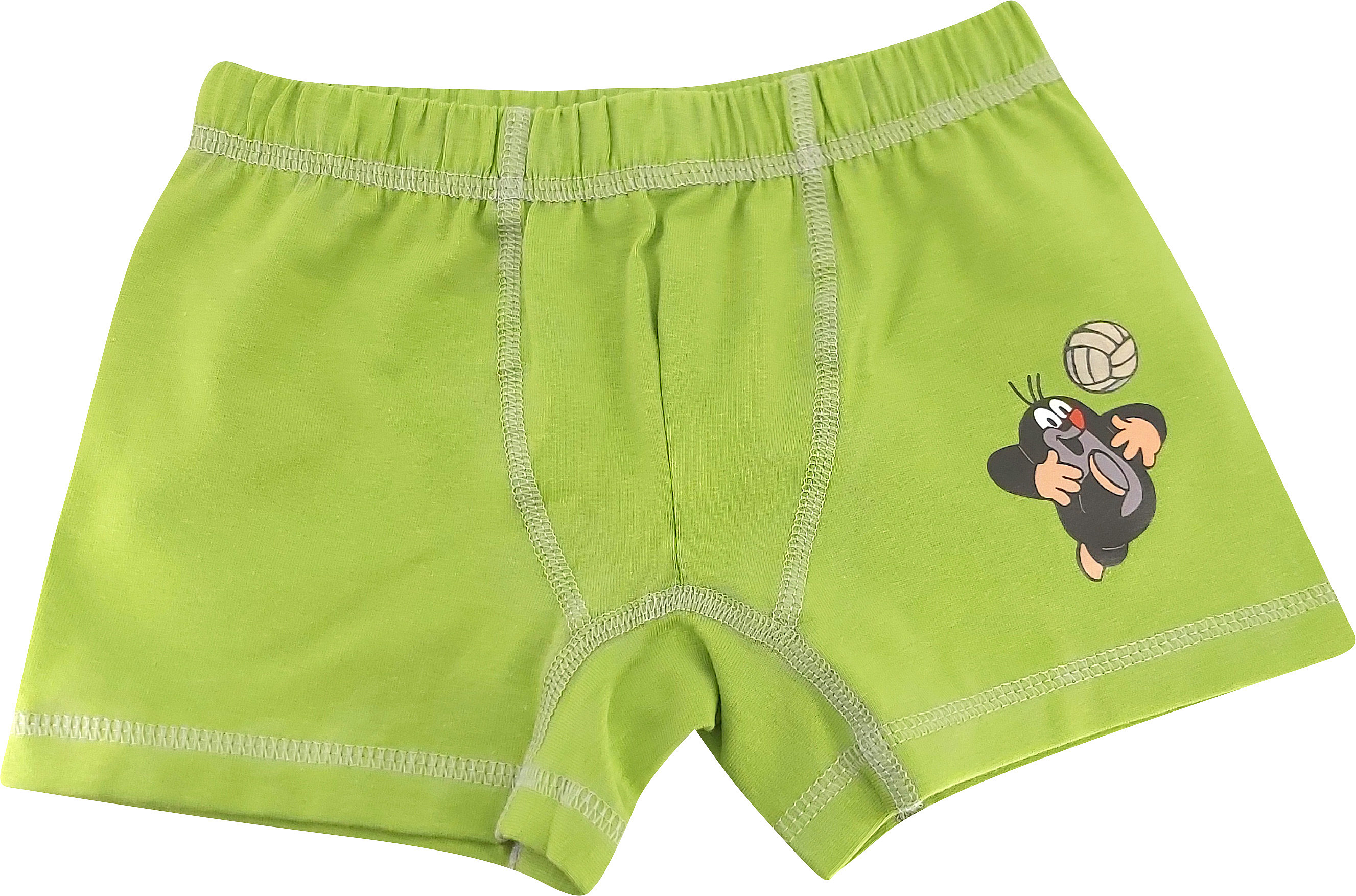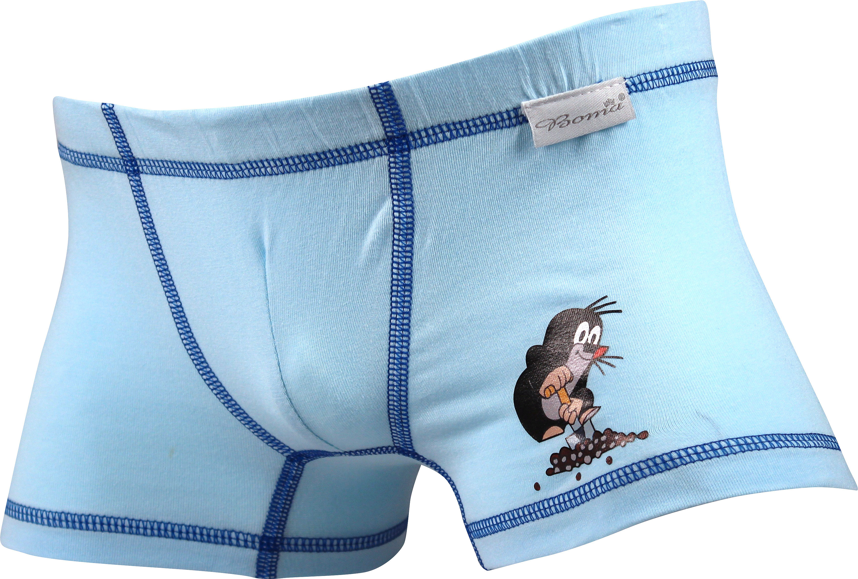 Chlapecké boxerky s Krtečkem KR 003 z kolekce Boma® pro malé kluky. Elastický bavlněný úplet je pružný, vyšší podíl bavlny zaručuje pohodlné nošení během celého dne. Zadní díl je vcelku a přední část je tvarovaná, díly jsou sešité plochými švy pro maximální pohodlí. Guma se nedotýká pokožky, je skrytá v úpletu. Dětské boxerky mají potisk s obrázkem oblíbeného Krtka, jsou ideální na každodenní nošení.
