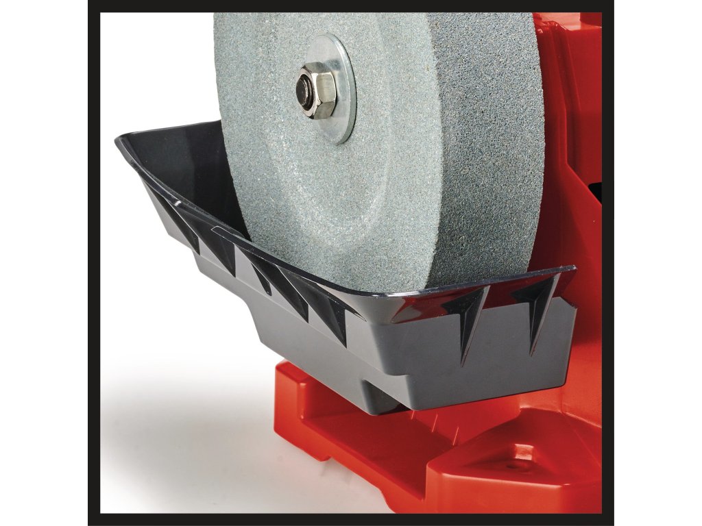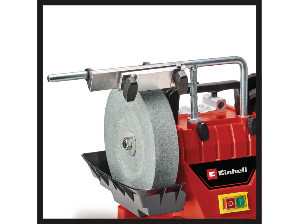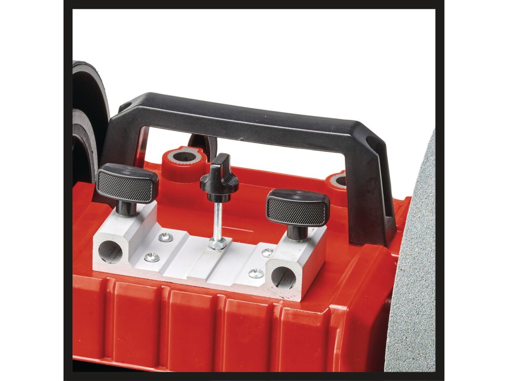 Bruska na mokré broušení TC-WG 200 Einhell je ideální na ostření nástrojů bez poškození obrobku. Při broušení se ke kotouči pomalu uvolňuje voda a tím zabraňuje přehřívání. Univerzální zařízení se přizpůsobí broušení široké škály nástrojů z různých materiálů. Nerezová nádrž na vodu ochlazuje obrubek. Pro leštění obrobku lze použít leštící pastu. Úhel je snadno nastavitelný pomocí úhloměru, který je součástí balení. Brusný kotouč lze připravit pomocí brusného kamene. 4 gumové nožičky absorbují vibrace a zajišťují bezpečnost a stabilitu při provozu. Součástí dodávky je jemnozrnný brusný kotouč na broušení za mokra a kožený honovací kotouč pro odstraňování otřepů.