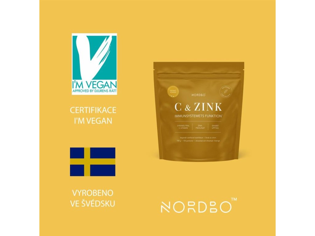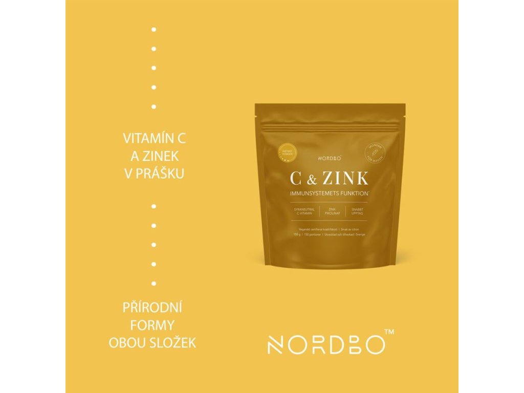 Nordbo Vitamin C & Zinc obsahuje dvě složky důležité pro efektivní obranný štít - vitamín C a zinek. Vitamín C je v doplňku obsažený ve velmi vysoké dávce, Navíc je v kysele neutrální formě askorbátu vápenatého, je tedy šetrný k žaludku. Zatímco zinek je v chelátované formě pikolinátu zinečnatého, kdy je zinek vázaný s kyselinou pikolinovou (přirozený metabolit tryptofanu), a je tedy velmi dobře dostupný pro tělo.