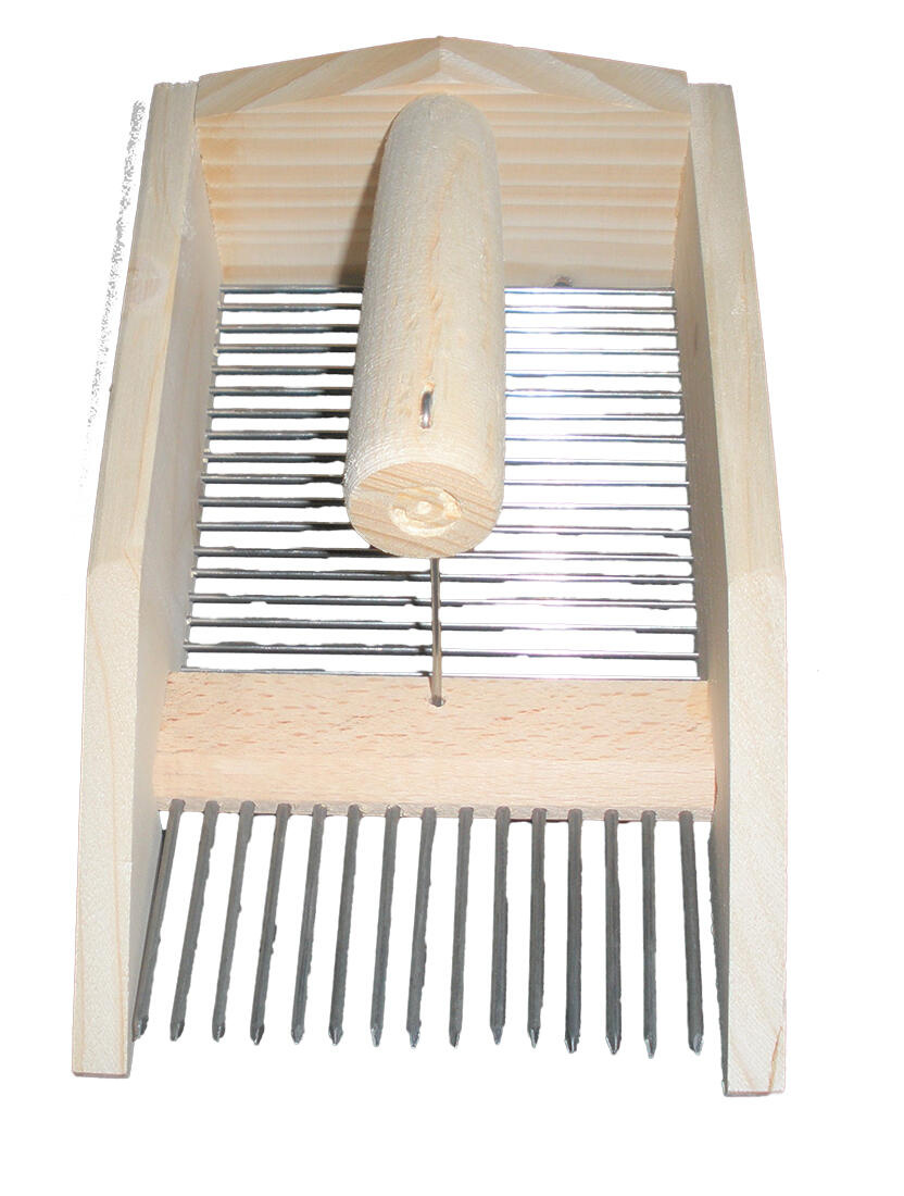 Česáček na borůvky je vyroben z tvrdého dřeva a nerezových drátků.