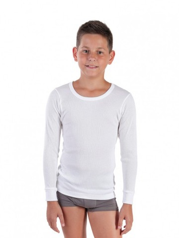 Chlapecký nátělník s dlouhým rukávem z žebrového materiálu 2:2 je vyroben ze 100% česané bavlny. Díky svému složení je ideální pro citlivou dětskou pokožku.