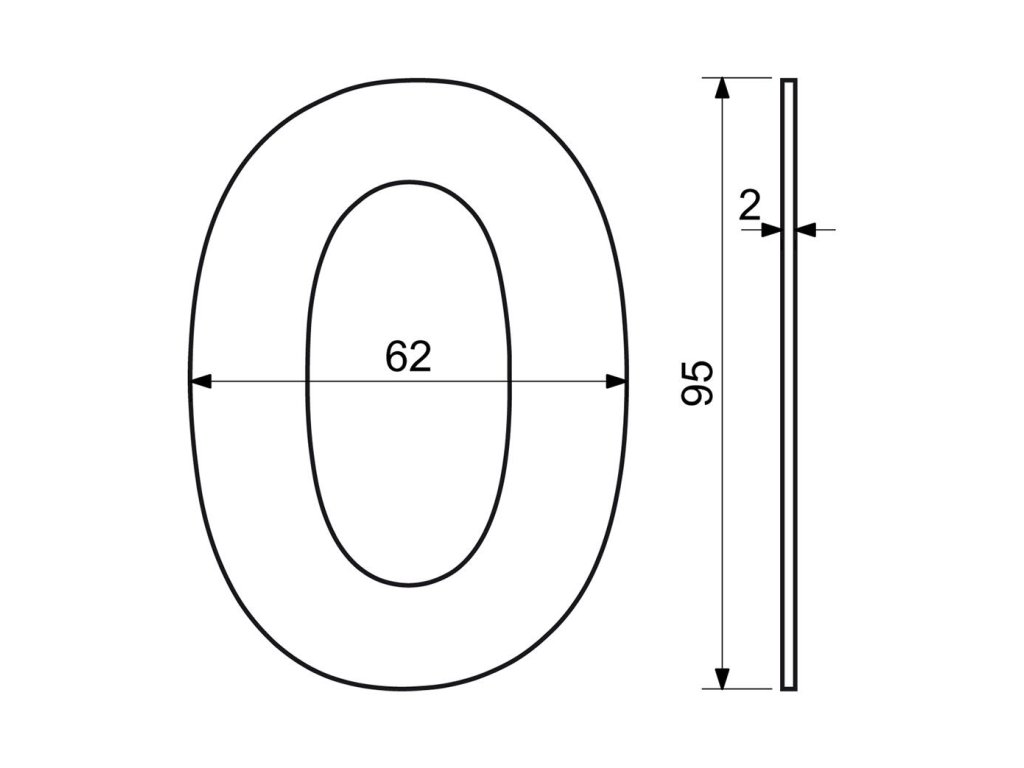 Číslo domovní č. 0, 95 mm, nerez ČER.