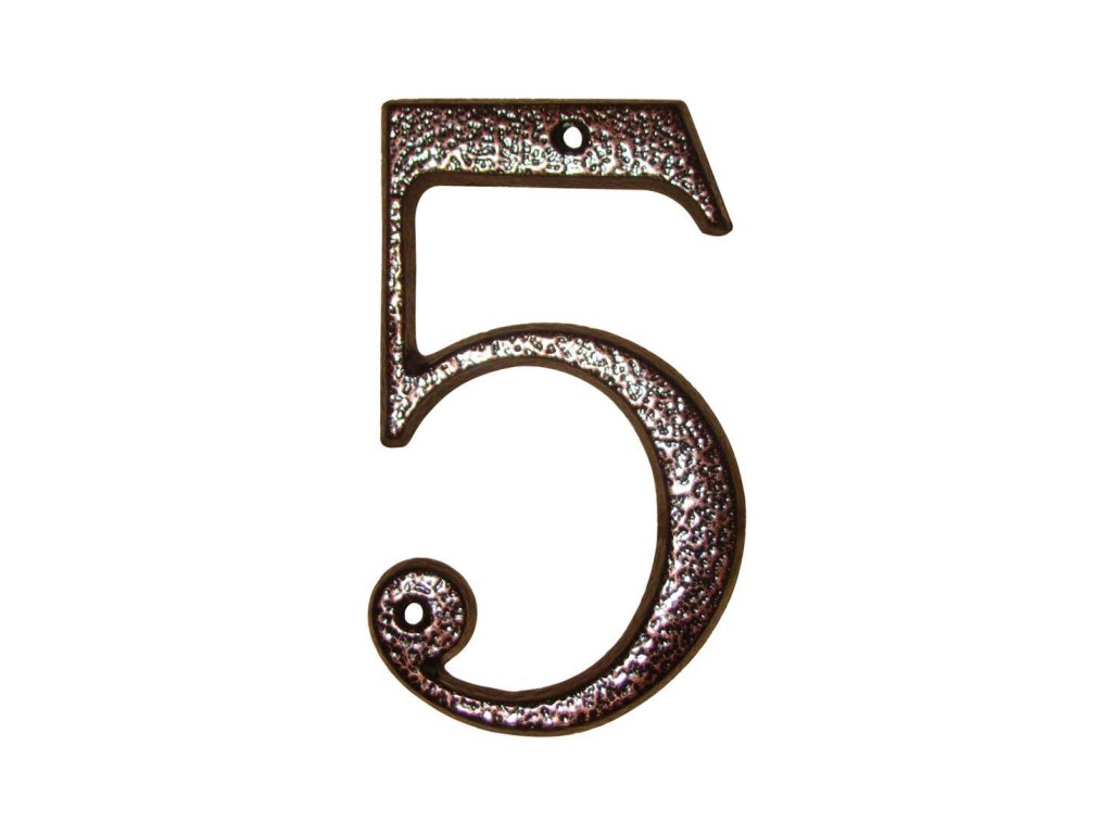Domovní popisné číslo 5 je vyrobené ze zinkoslitiny.