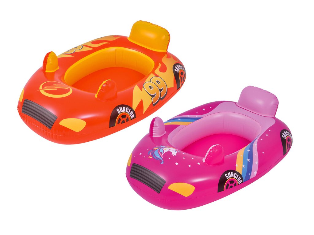 Dětský nafukovací člun AUTO, v růžovém nebo červeném barevném provedení, je skvělý při hrátkách dětí ve vodě.