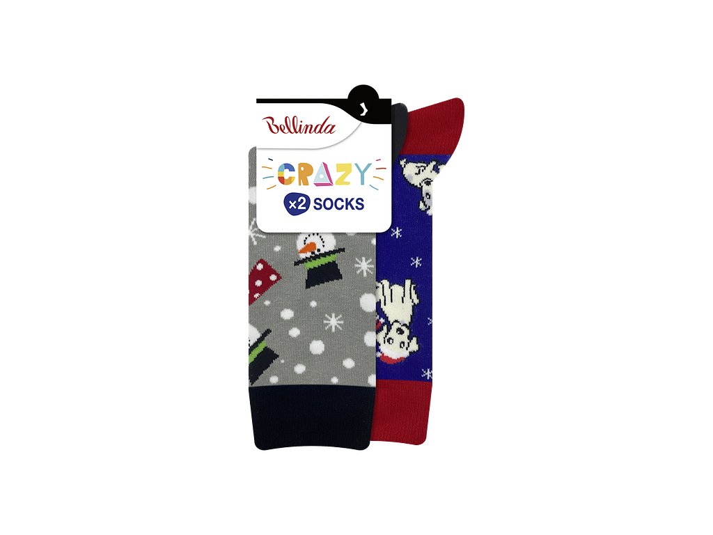 CRAZY SOCKS 2x - Veselé ponožky 2 páry - šedá - modrá