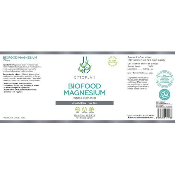Cytoplan Biofood Magnesium 100 mg, 120 vegan tablet>