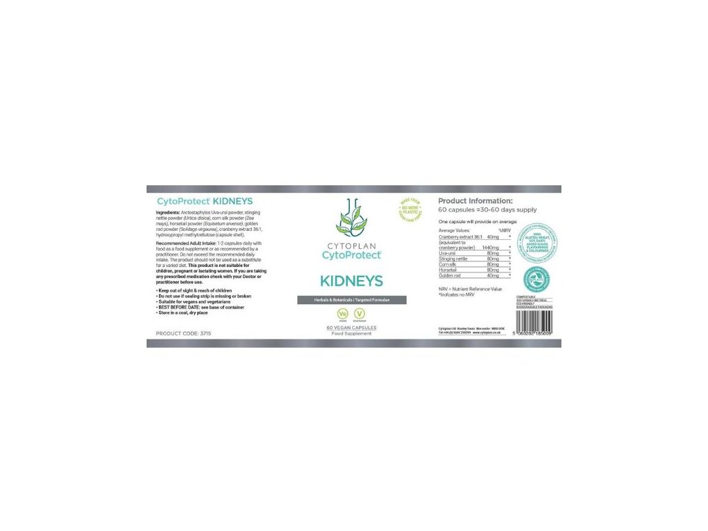 CytoProtect Kidneys je speciální botanický komplex od firmy Cytoplan, sestavený mistrem bylinkářem se zaměřením na ledviny.Obsahuje známé, tradičně využívané bylinky a rostliny jako medvědici lékařskou, kopřivu dvoudomou, brusinku, přesličku, kukuřičné hedvábí a zlatobyl.