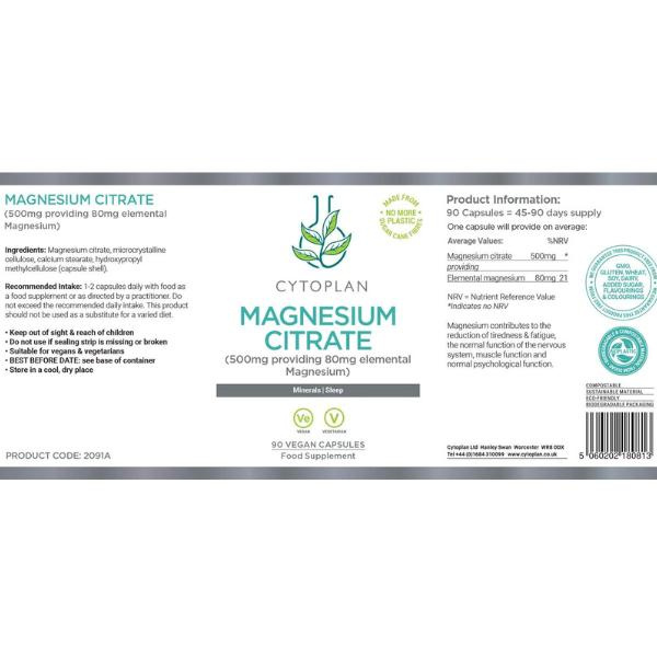 Cytoplan Magnesium citrát 500 mg, 90 vegan kapslí>