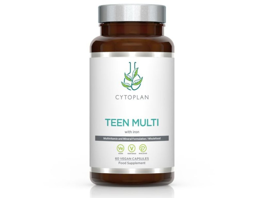 Cytoplan Multivitamin pro teenagery je komplexní směsí vitaminů, minerálů a rostlinných složek vytvořenou pro potřeby dospívajících. Obsahuje bioaktivní formy živin včetně kyseliny listové, vitaminu B12 a vitaminu B6, stejně jako dobře vstřebatelné železo. Směs fytonutrientů z brokolice, mrkve, spiruliny, aceroly a acai poskytuje další mikroživiny pocházející z rostlinných zdrojů. Přípravek je vhodný pro aktivní a vytížené teenagery, kteří potřebují pravidelné doplnění vybraných vitaminů a minerálů. Jednoduchý způsob, jak začlenit kvalitní živiny do každodenního režimu dospívajícího.