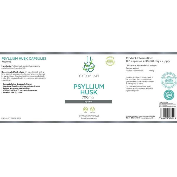 Slupky psyllia obsažené v kapslích od firmy Cytoplan se po požití v trávicím traktu mění na gel, který zvětšuje svůj objem a díky tomu podporuje normální vylučování s formováním stolice. Zlepšuje tak trávení a vyprazdňování. Kromě toho je psyllium zpracováno za sucha a obsaženo v 99,9% čisté formě.