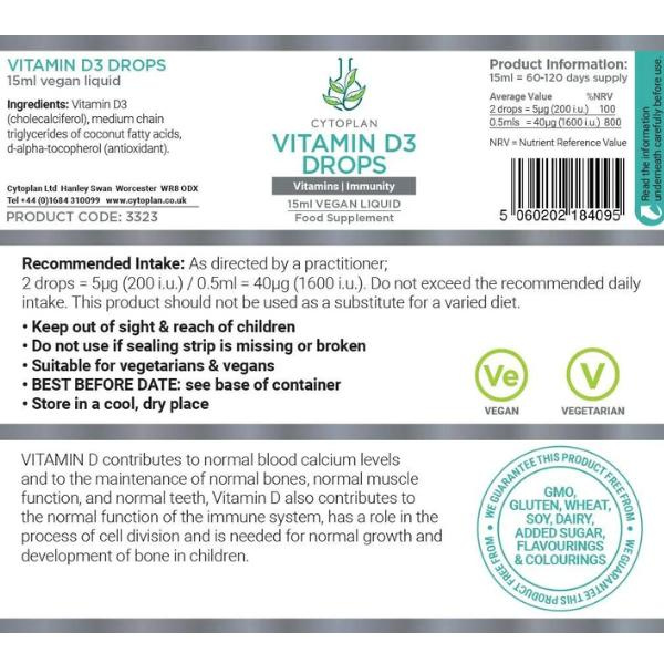 Cytoplan Vitamin D3 v kapkách je vhodný nejen pro dospělé, vegany, ale i pro děti již od narození! Díky svému složení se dobře vstřebává a snadno používá, přičemž už jen dvě kapky obsahují až 200 IU vitamínu D3. Lahvička a pipetka umožňují snadné a pohodlné dávkování.
