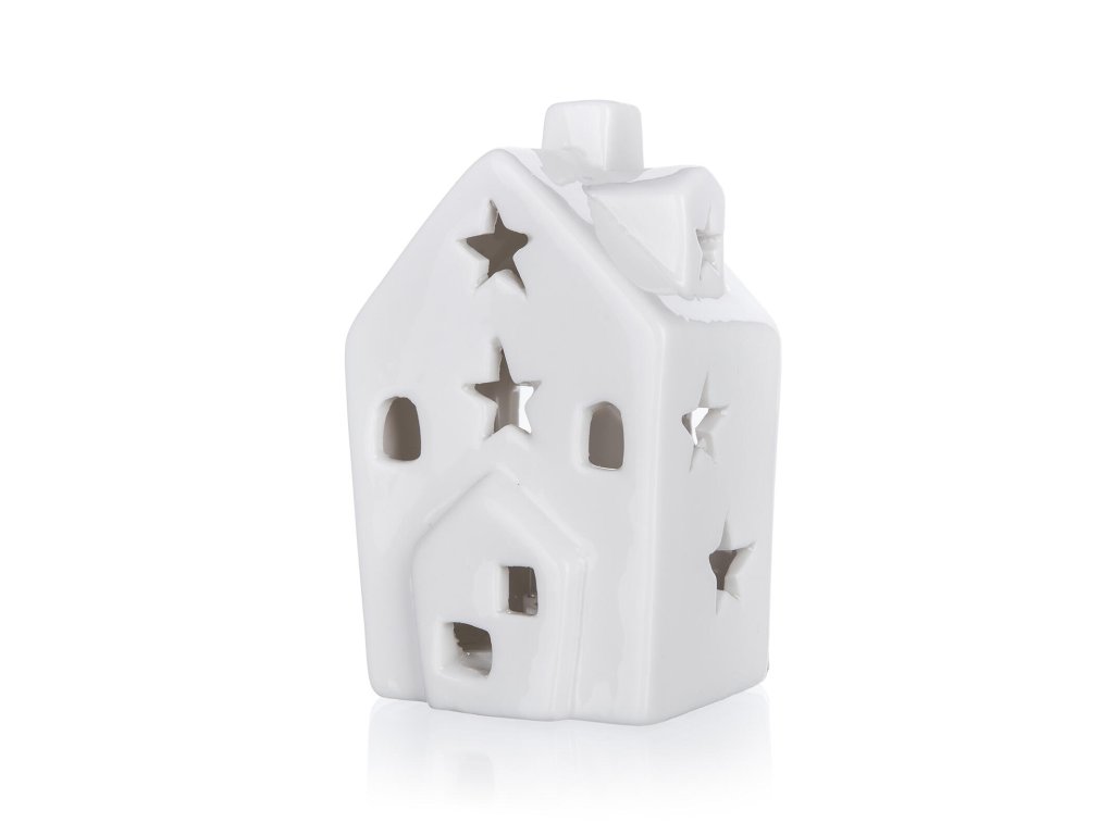 Domeček LED s bílým světlem, var. 1, vyrobený z porcelánu v bílé barvě je krásná dekorace do vašeho interiéru. Dekorativní domečky s mihotavým bílým světlem vytvářejí příjemnou atmosféru. Mihotavé světlo napodobuje světlo hořící svíčky. Obsahuje baterie a LED žárovku.