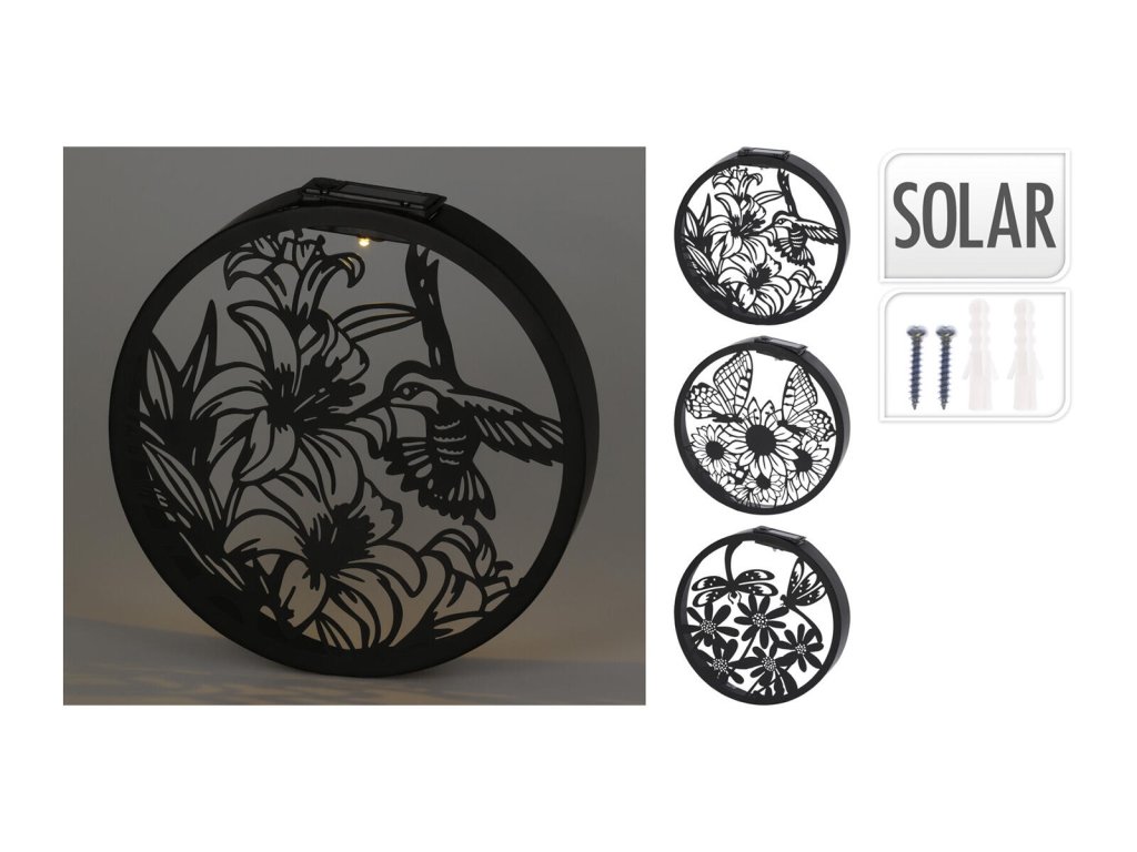 Elegantní kruhová solární dekorace, s LED podsvícením, na zeď.