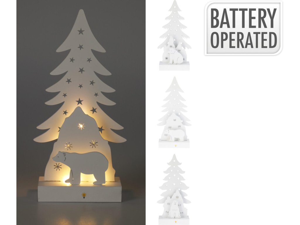 Dekorace závěsná STROM S MEDVĚDEM 6LED, 34 cm, dřev. BÍ, mix.