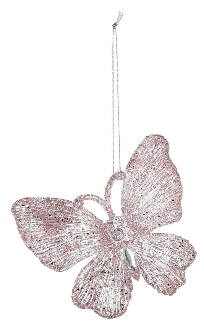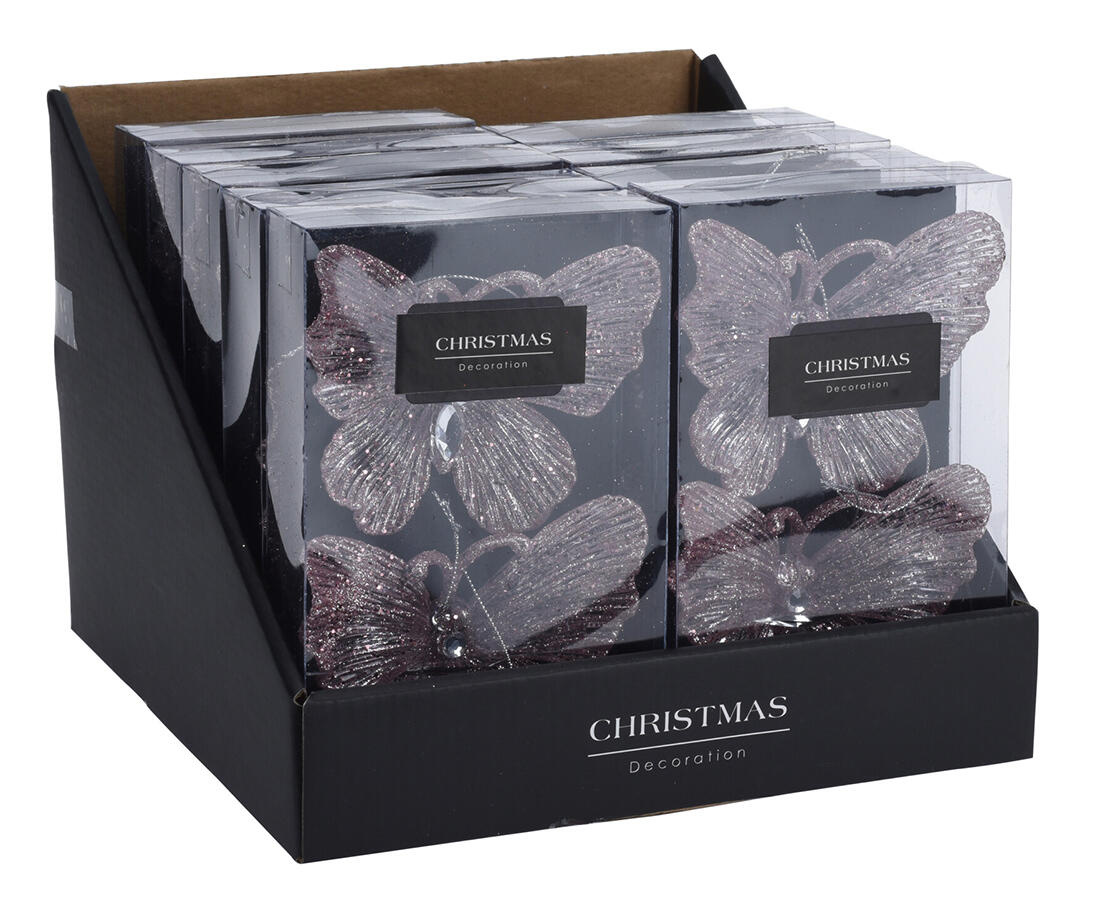 Dekorace vánoční MOTÝL 11 cm, PH RŮŽ (2 ks).