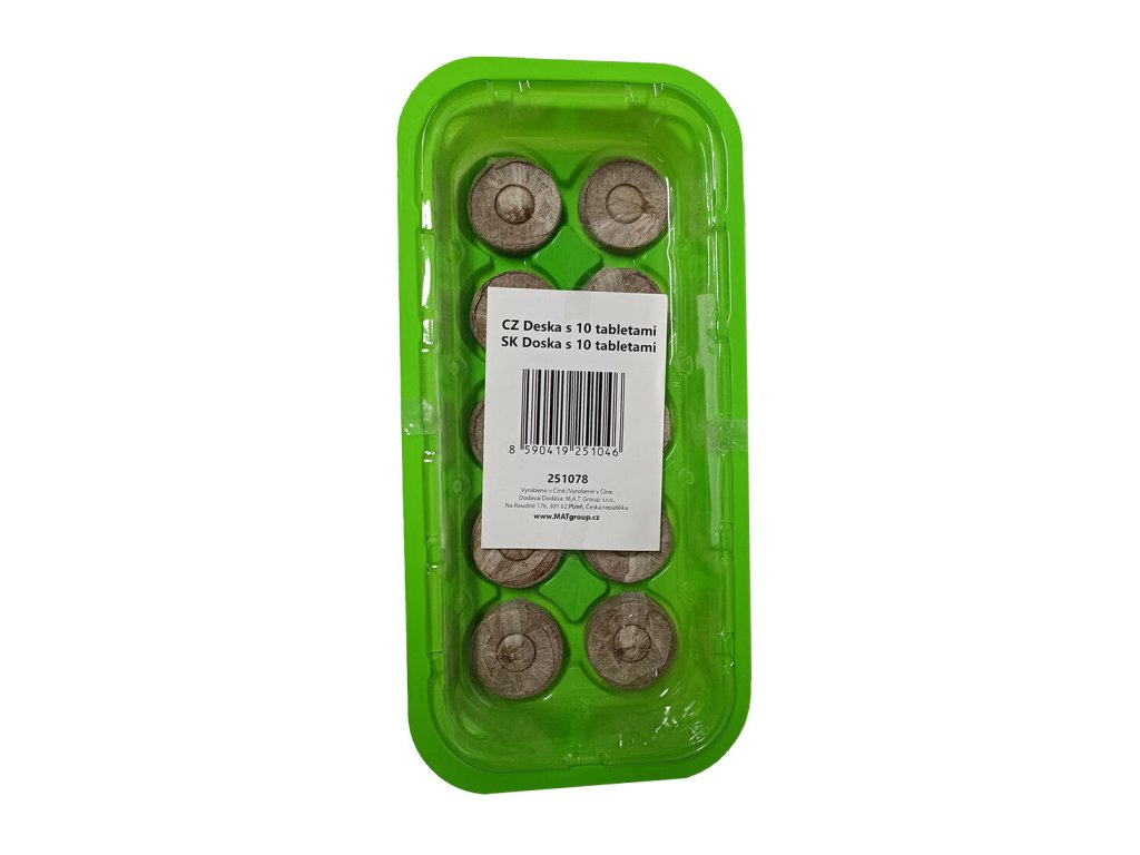 - sada 10 ks kompresních tablet s živinami půdy z kokosových otrub