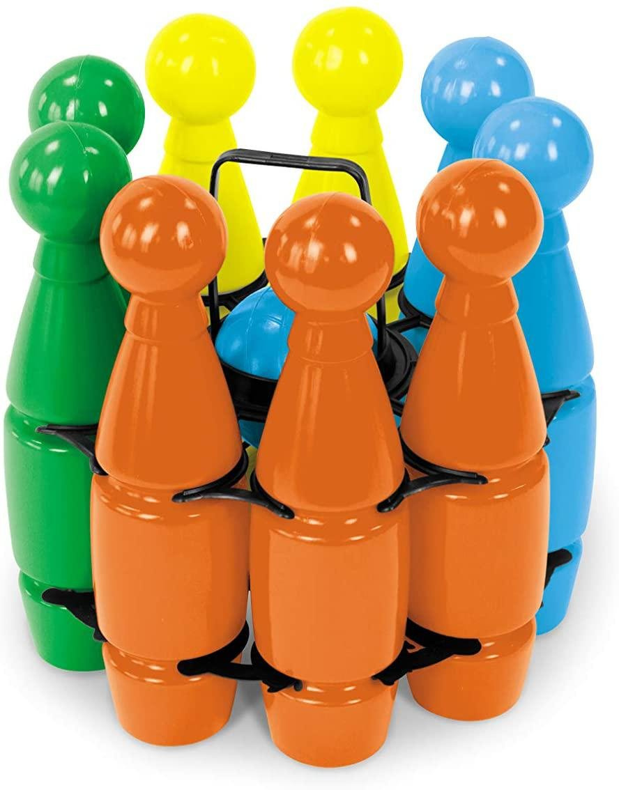 Sada od italského výrobce MONDO je kvalitní bowlingová sada pro dívky a chlapce od 3 let. V soupravě se nachází 9 barevných kuželek a bowlingová koule. Kuželky vysoké 25 cm jsou vyrobeny z kvalitního plastu. Tato souprava jistě přinese dětem mnoho radosti. Kuželky (nebo bowling) jsou velmi zábavnou hrou, která se dá hrát i uvnitř i venku.