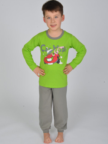 Pro příjemný spánek a dobrou noc děti potřebují spaní jako v bavlnce. Dětské pyžamo z příjemné bavlny se skládá z trika s potiskem a jednobarevných dlouhých pyžamových kalhot.