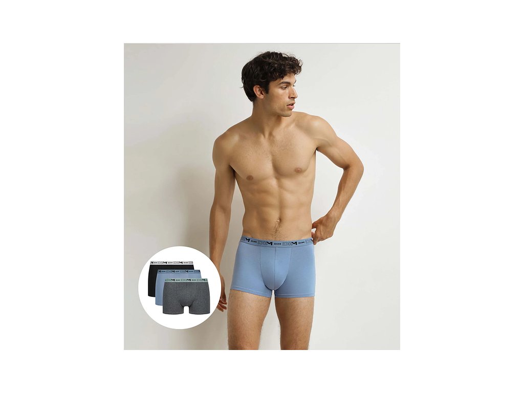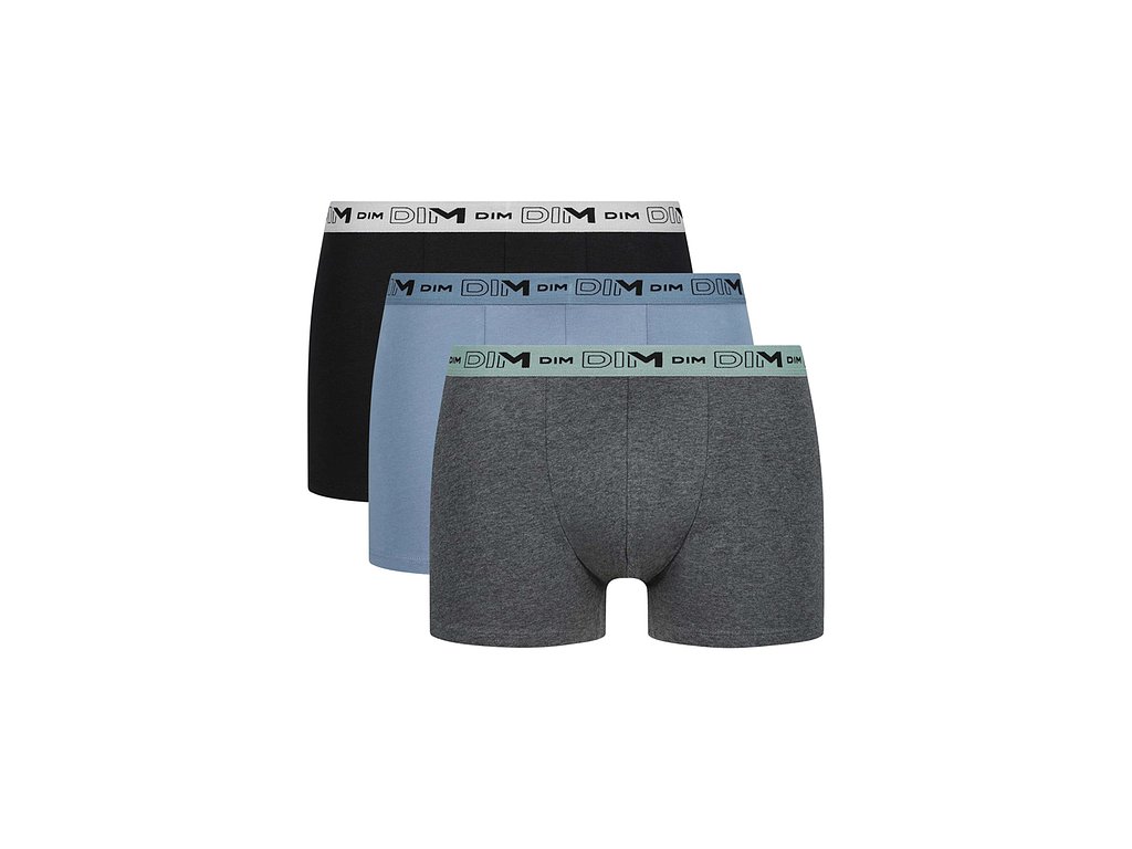 DIM COTTON STRETCH BIO BOXER 3x - Pánské boxerky z bio bavlny 3ks - šedá - modrá - černá