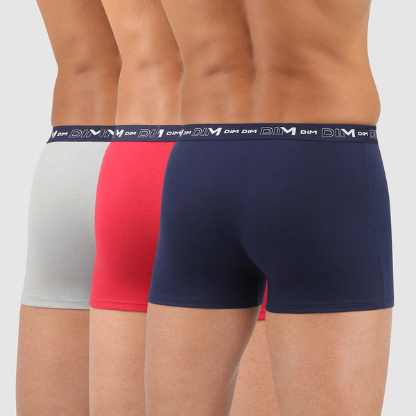 DIM COTTON STRETCH BOXER 3x - Pánské boxerky 3 ks - tmavě modrá - tmavě červená - šedá