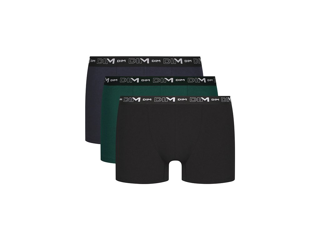 DIM COTTON STRETCH BOXER 3x - Pánské boxerky 3 ks - tmavě zelená - modrá - černá