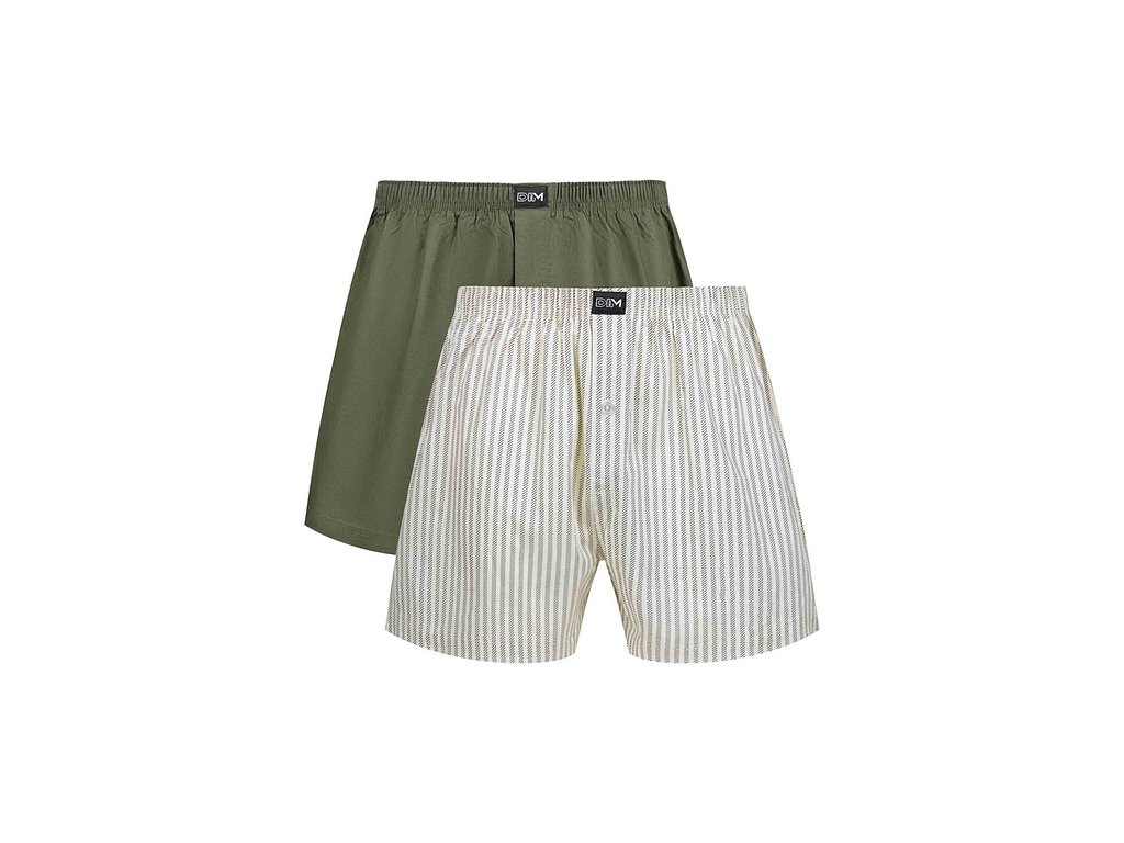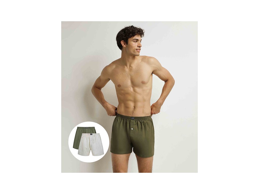 DIM COTTON STRETCH LOOSE BOXER 2x - Pánské volné boxerky 2 ks - šedá - zelená