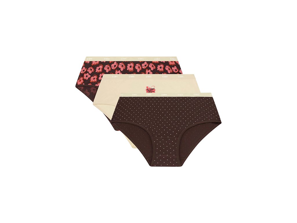 DIM LES POCKETS COTTON BOXER 3x - Dámské bavlněné kalhotky 3 ks - tmavě hnědá - světle hnědá
