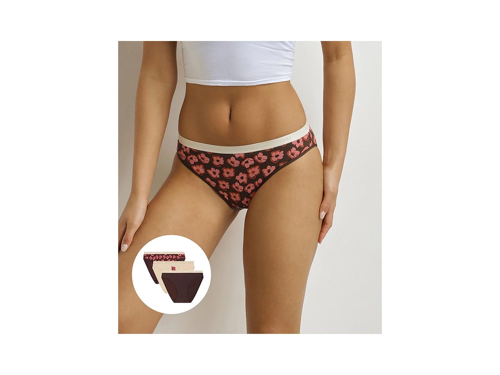 DIM LES POCKETS COTTON SLIP 3x - Dámské bavlněné kalhotky 3 ks - tmavě hnědá - světle hnědá