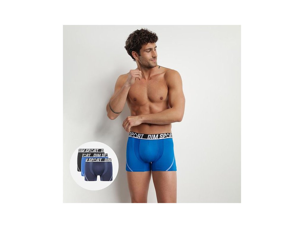 DIM SPORT MICROFIBRE BOXER 3x - Pánské sportovní boxerky 3 ks - černá - modrá