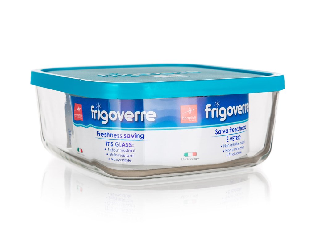 Dóza FRIGOVERRE čtvercová 1,0 l, 15 x 15 x 5 cm, skl. + PP víčko MO.