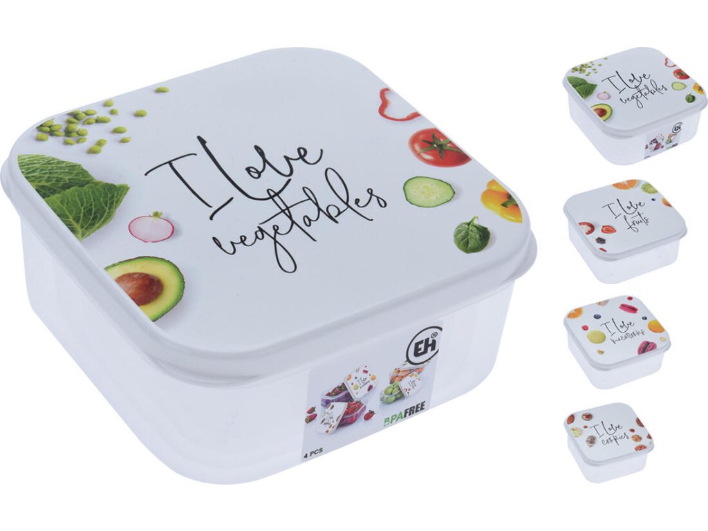 dóza čtverc.s potiskem sada 4díl.(0,3+0,45+0,65+1,0l) PH