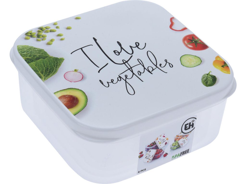 Dóza čtvercová s potiskem, 4dílná sada(0,3 + 0,45 + 0,65 + 1,0 l) PH.