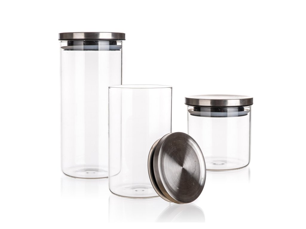 Dóza FREIA sada 3díl. (0,65 + 1,1 + 1,45 l) sklo + nerez víčko.
